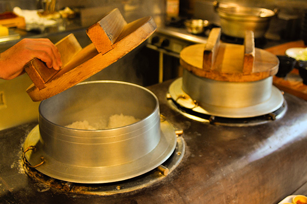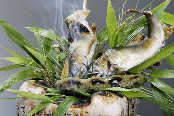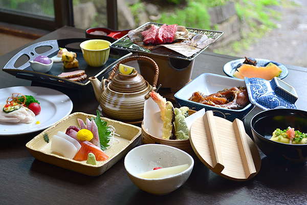 Enjoy rice cooked over a furnace with plenty of seasonal tastes Meals are served in the kamado-dining room on the 2nd floor (You will be shown to a private room according to the number of persons present on the day). Meals are cooked mainly using local ingredients. Tokiwakan's specialty is "Saku carp slowly simmered in our secret-recipe sauce". This famous dish was created by the owner about 30 years ago. The carp raised in the clear streams of Shinshu are delicious with little of the distinctive smell. For those who dislike carp, there is the alternative of a meat dish. Please inquire by e-mail for the details of the meat dish.