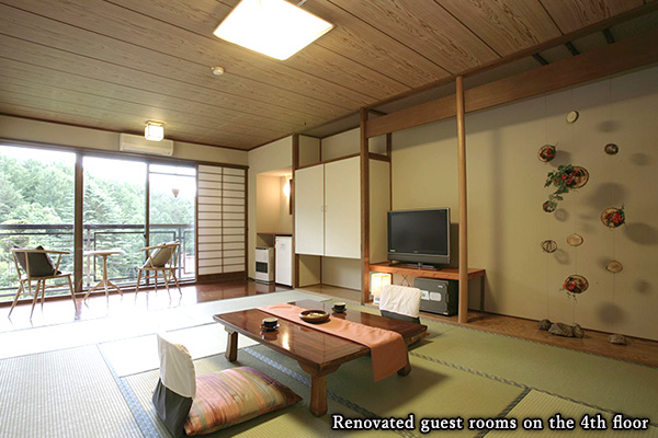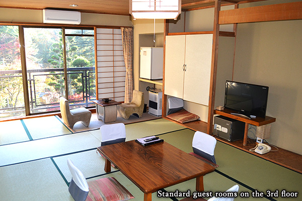 Each guest room has a bathroom. Each guest room has an empty refrigerator. Drinks can be brought into the guest rooms. Soft drinks and alcoholic drinks are available at the vending machine in the corridor. The water in the guest rooms is spring water from the Tokiwakan premises. Fresh natural water flows out from the faucet for you to drink.